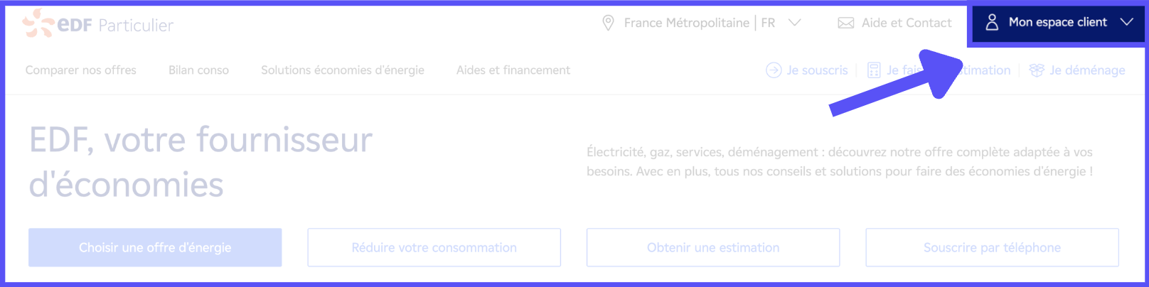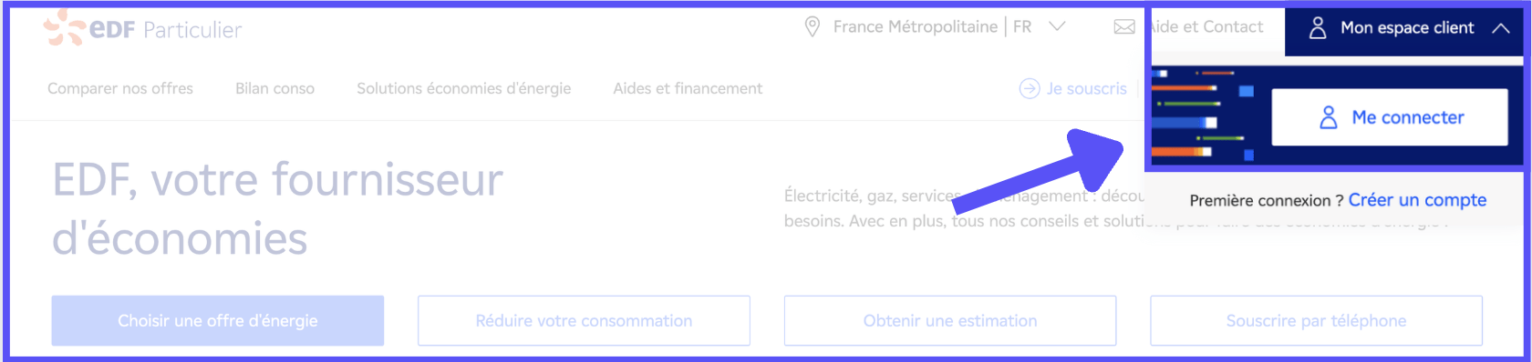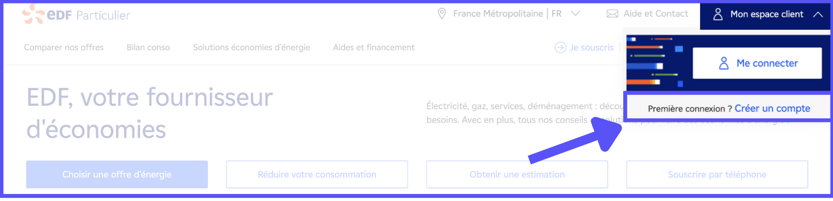 Pour accéder à la rubrique de création de votre espace client EDF, suivez ces étapes :
