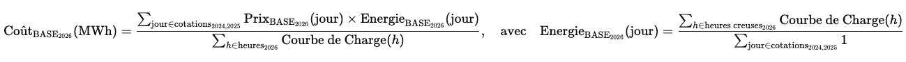 Le prix de ce provisionnement est calculé en faisant la moyenne sans pondération de toutes les enchères de 2024 à 2025 concernant les garanties de capacité de l'année 2026. Enfin, le coût relatif à la composante capacité dans l'empilement est obtenu, pour chaque profil, en divisant le coût total du provisionnement en garanties de capacité par la consommation totale d'un profil donné.