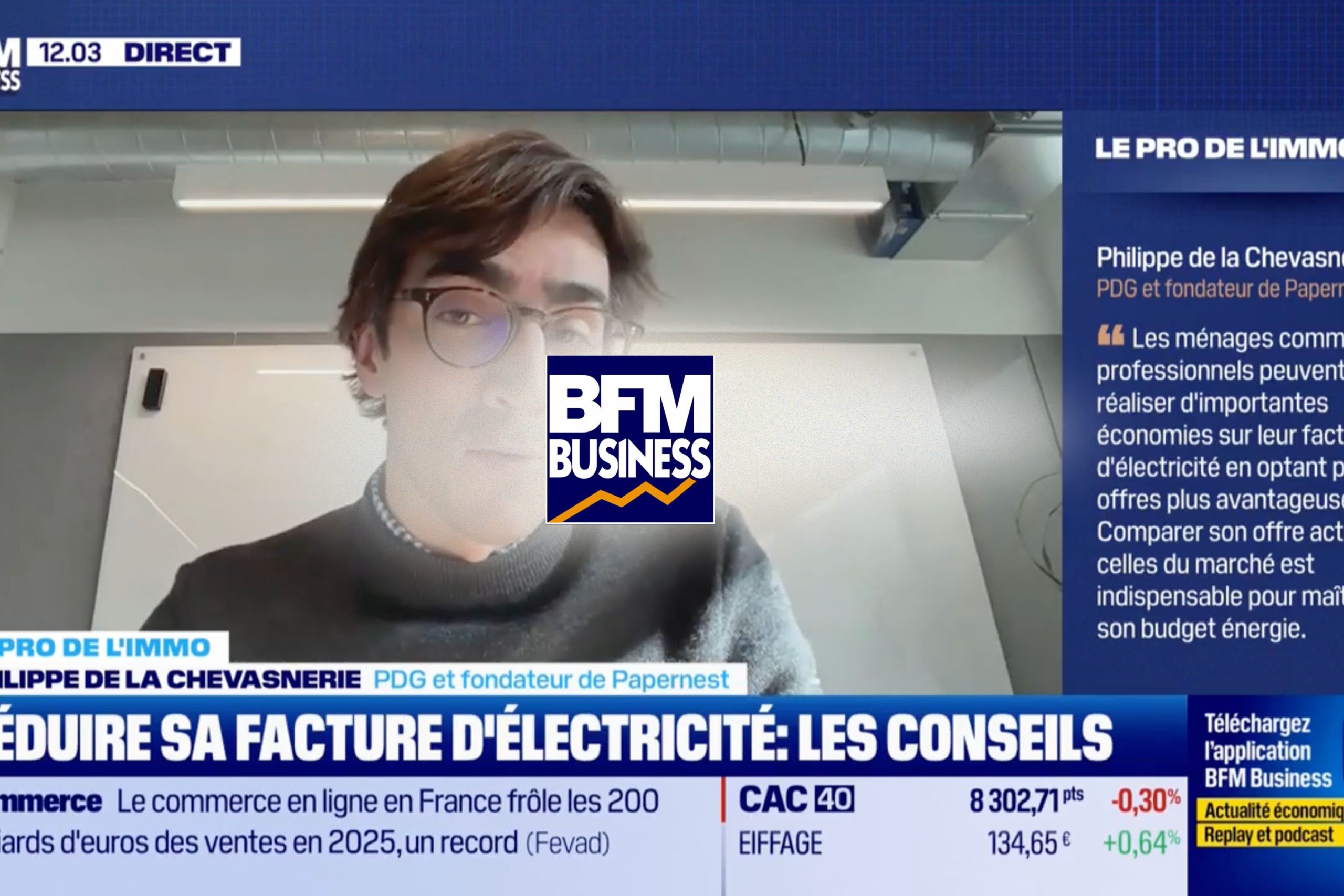 Philippe de la Chevasnerie, PDG et cofondateur de papernest, détaille dans cette interview comment la comparaison des fournisseurs d'énergie via papernest permet de réduire sa facture d'électricité.